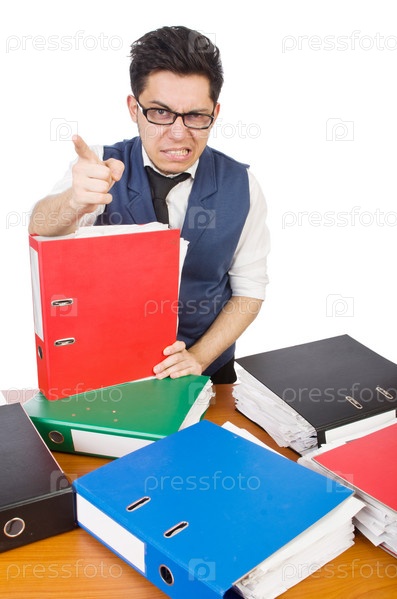 Забавный человек с большим количеством папок