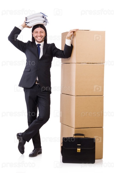 Забавный человек с коробками