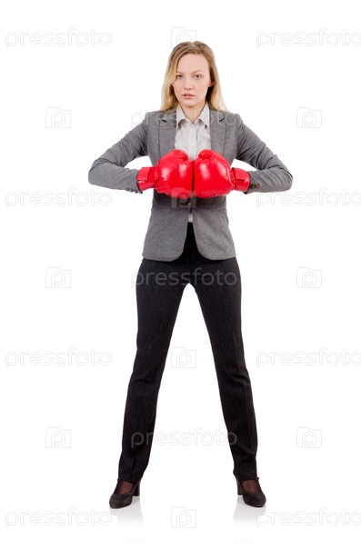 Бизнес-леди с боксерскими перчатками