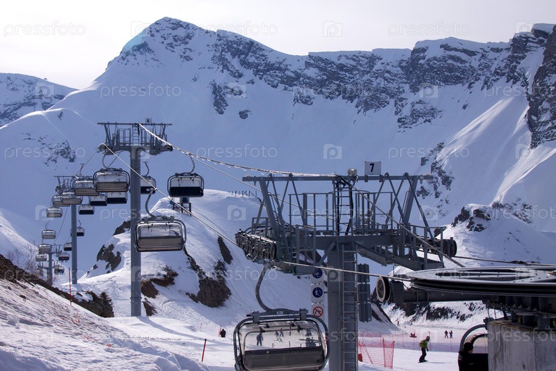 Кресельный подъемник на горнолыжной трассе