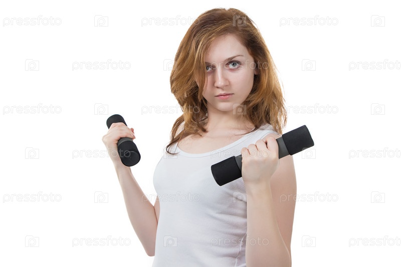 Женщина с гантелями
