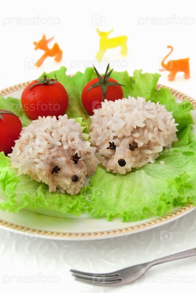 Детская еда - тефтели в виде ежиков с овощами