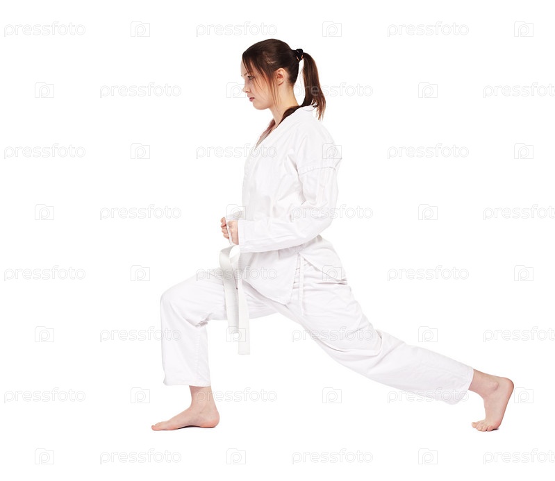 Портрет красивой девушки, занимающейся боевыми искусствами, на белом фоне