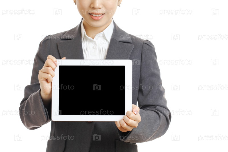 Бизнес-леди держит планшет