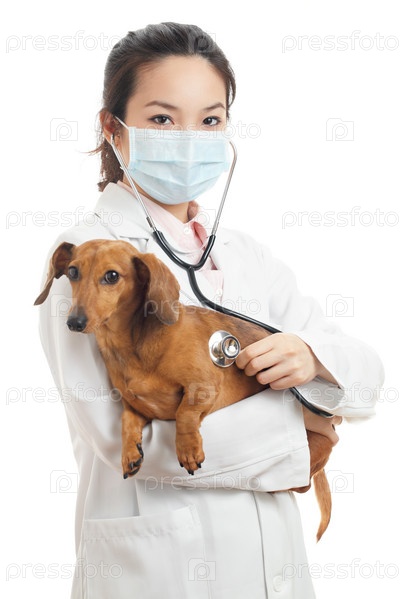 Азиатский ветеринар с таксой
