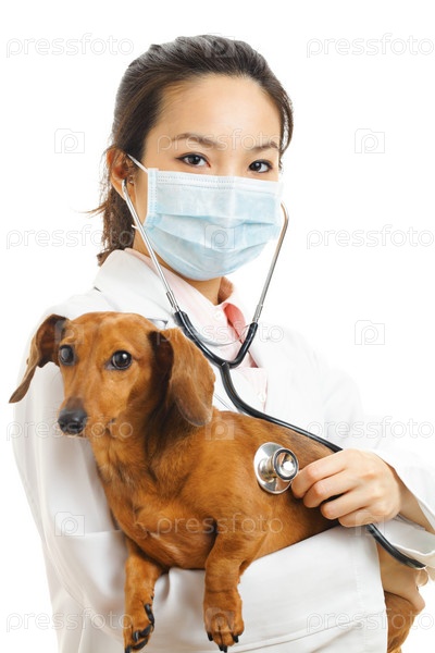 Азиатский ветеринар с таксой