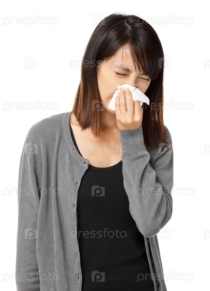Чихающая азиатская женщина