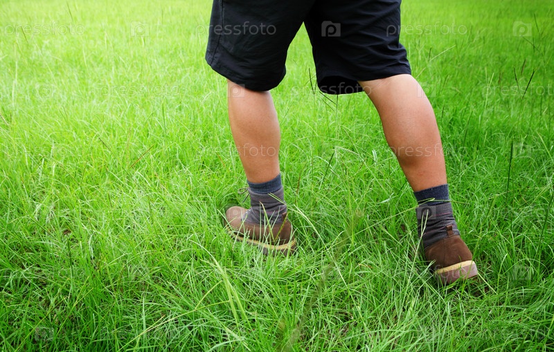 Человек идет по траве