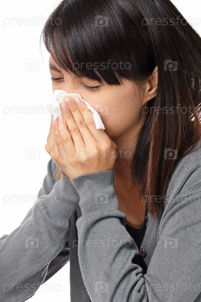Чихающая азиатская женщина