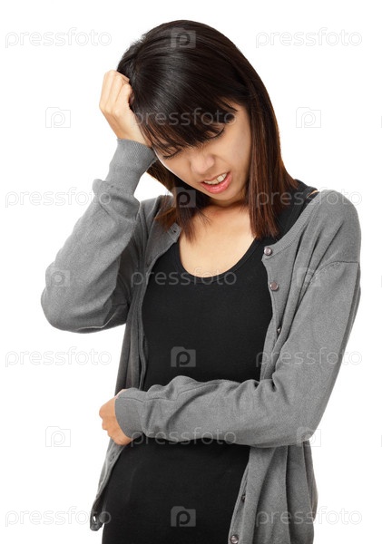 Азиатская женщина с головной болью