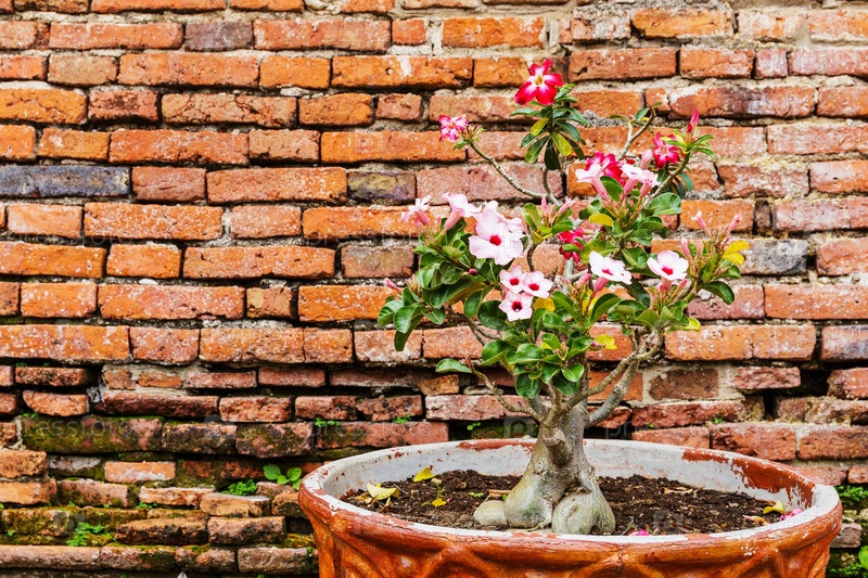 Розовый цветок в горшке