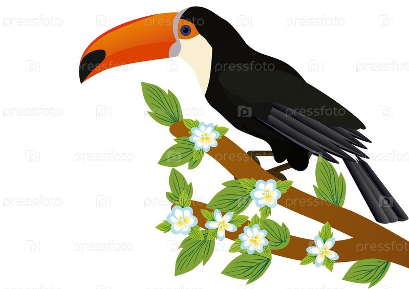 Тукан на ветке с цветами