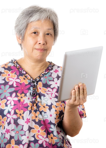 Азиатская женщина с цифровым планшетом