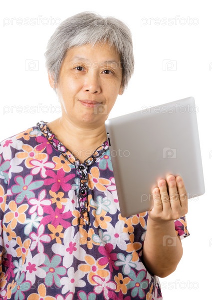 Азиатская женщина с цифровым планшетом