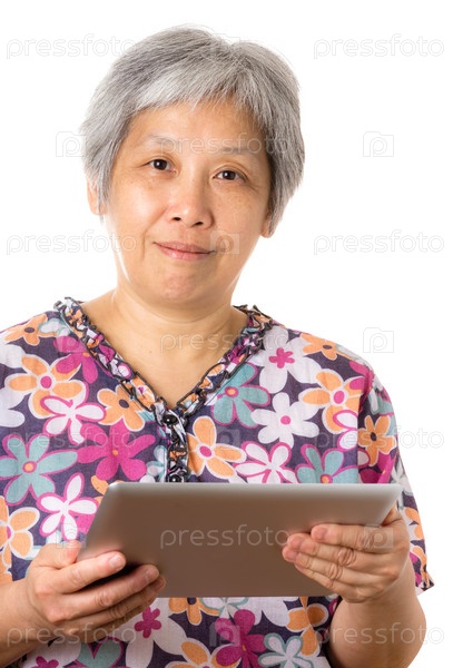 Азиатская женщина с цифровым планшетом