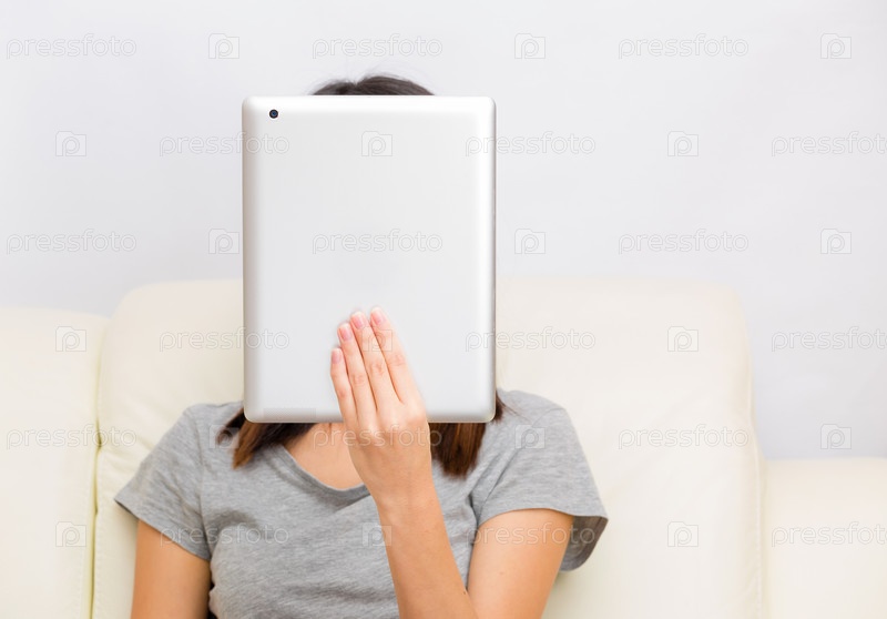 Азиатская женщина использует планшетный компьютер
