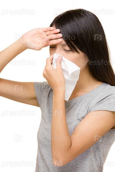 Чихающая азиатская женщина