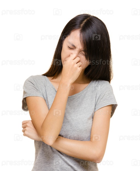 Чихающая азиатская женщина