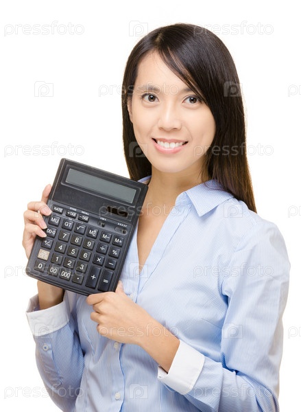 Азиатская женщина с калькулятором