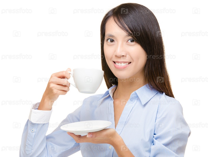 Азиатская деловая женщина с чашкой