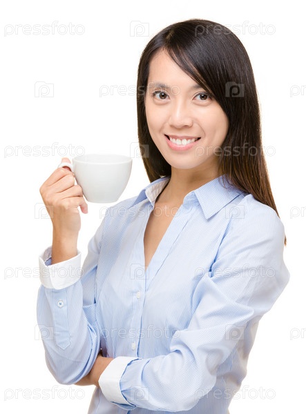 Азиатская деловая женщина с чашкой