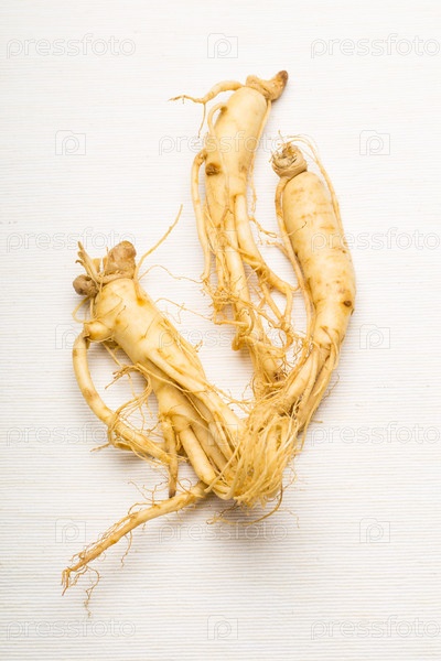 Свежий женьшень на белом фоне