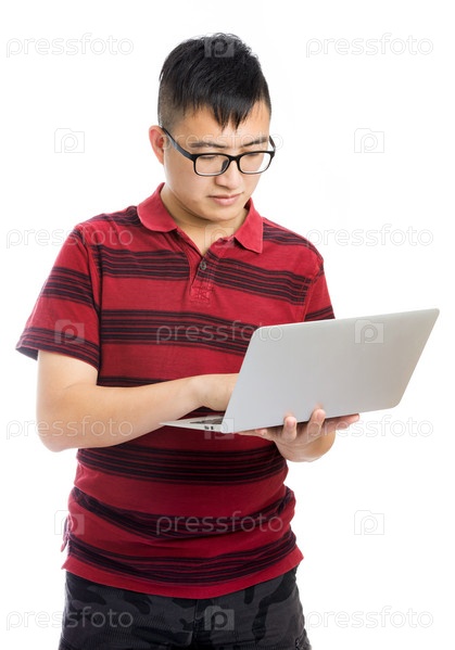 Азиатский мужчина с ноутбуком