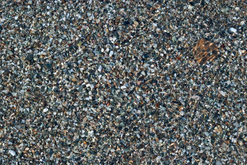 Разноцветные морские камушки на пляже под слоем прозрачной воды