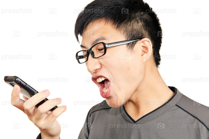 Мужчина кричит на телефон