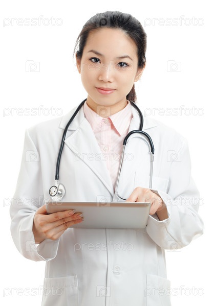 азиатская женщина-врач на белом фоне