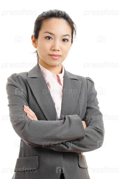 Азиатская бизнес-леди на белом фоне