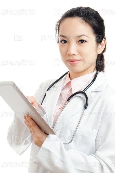 Азиатская женщина-врач на белом фоне
