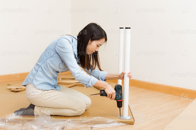 Азиатская женщина собирает кухонный стол