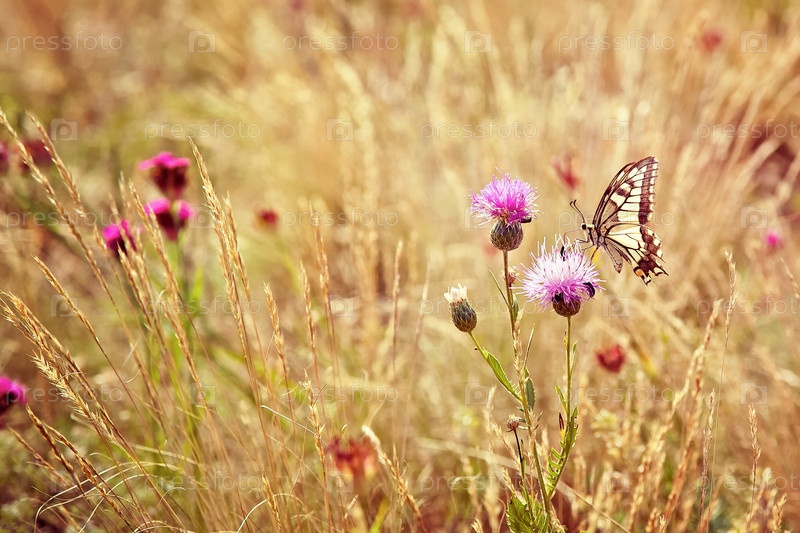 Маленькая бабочка собирает нектар