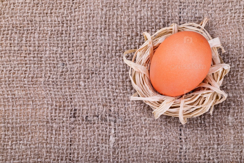 Яйцо на фоне мешковины