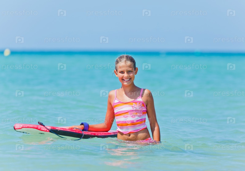 Девочка с доской для серфинга