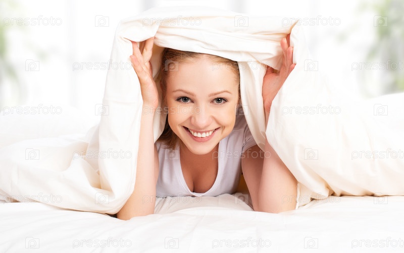 Молодая блондинка под одеялом