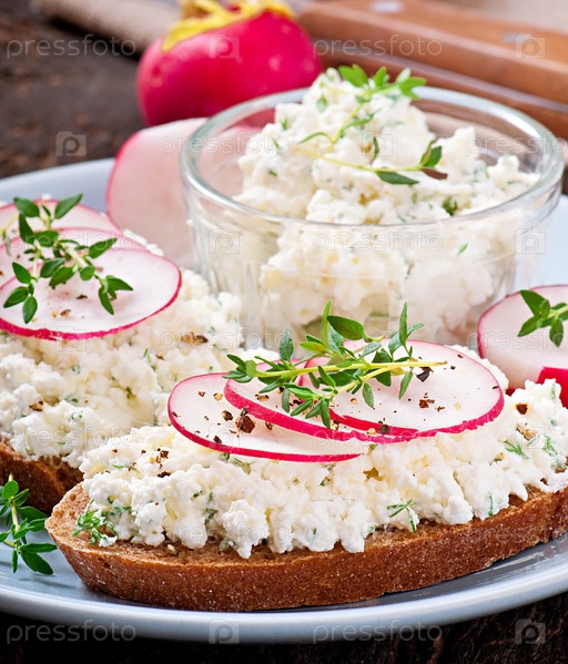 Бутерброд с творогом и редисом