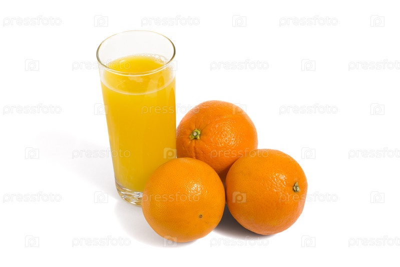 Свежие апельсины и стакан сока