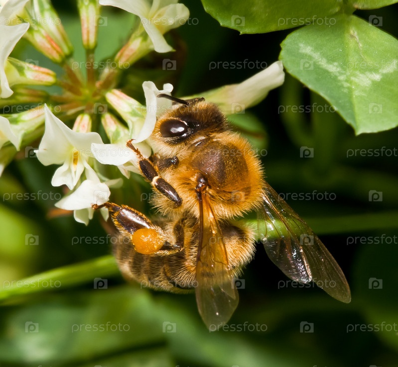 Пчела опыляет клевер