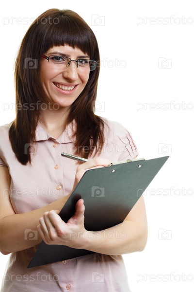 Женщина в очках на белом фоне
