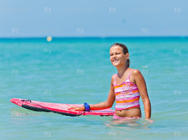 Девочка с доской для серфинга