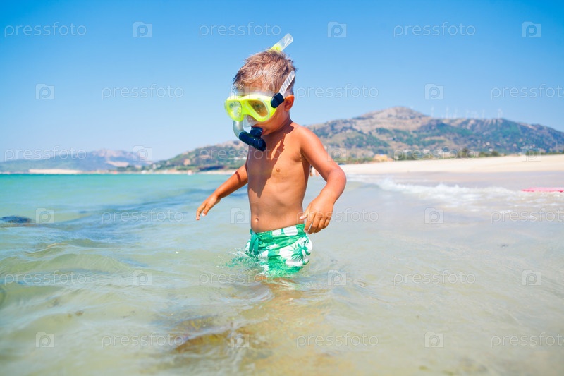 Счастливый мальчик в маске для плавания