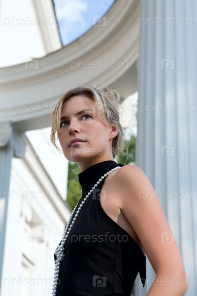 Портрет красивой белокурой женщины в черном платье