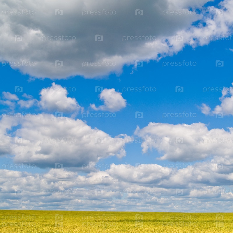 Красивый летний пейзаж с голубым небом и белыми облаками