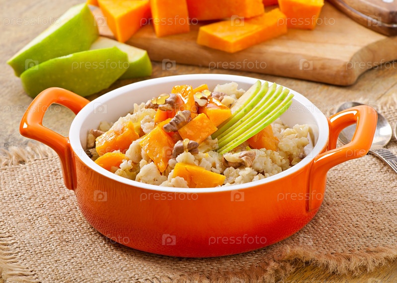 Овсяная каша с тыквой, яблоками, орехами и медом
