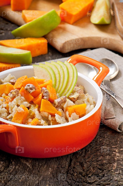 Овсяная каша с тыквой, яблоками, орехами и медом