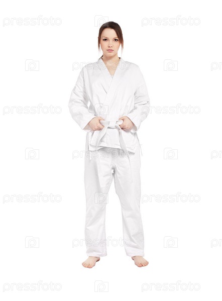Красивая девушка занимается каратэ