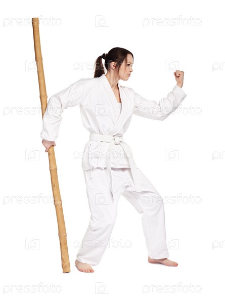 Красивая девушка занимается каратэ