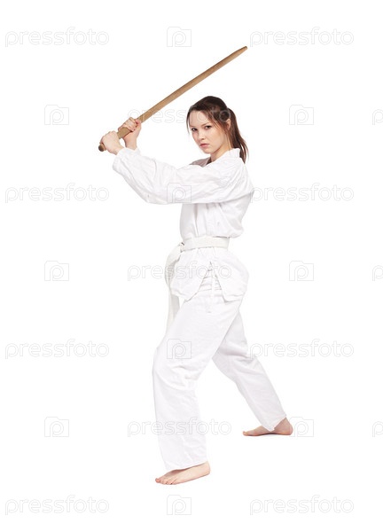 Красивая девушка занимается каратэ